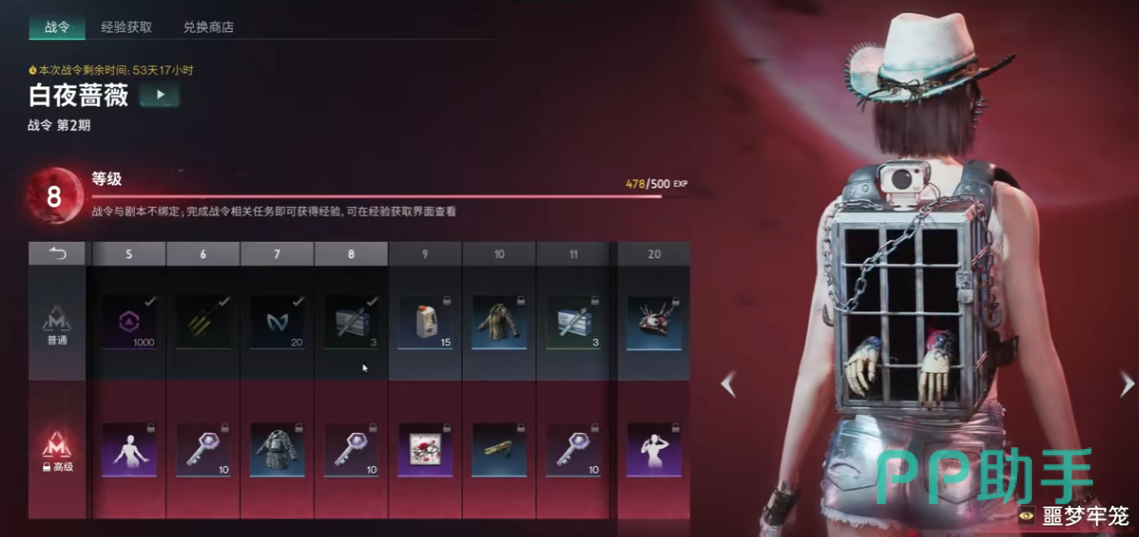 就可以解锁最主要的奖励,后面等级越高的话也只能获得一些重复奖励,例如电池和其他道具。每个战令存在的期间都可以获得限定时装,例如上一个版本up的白夜墙薇套装。这是一套鬼魅又妖艳的时装,早就吸引了不少人的目光。
