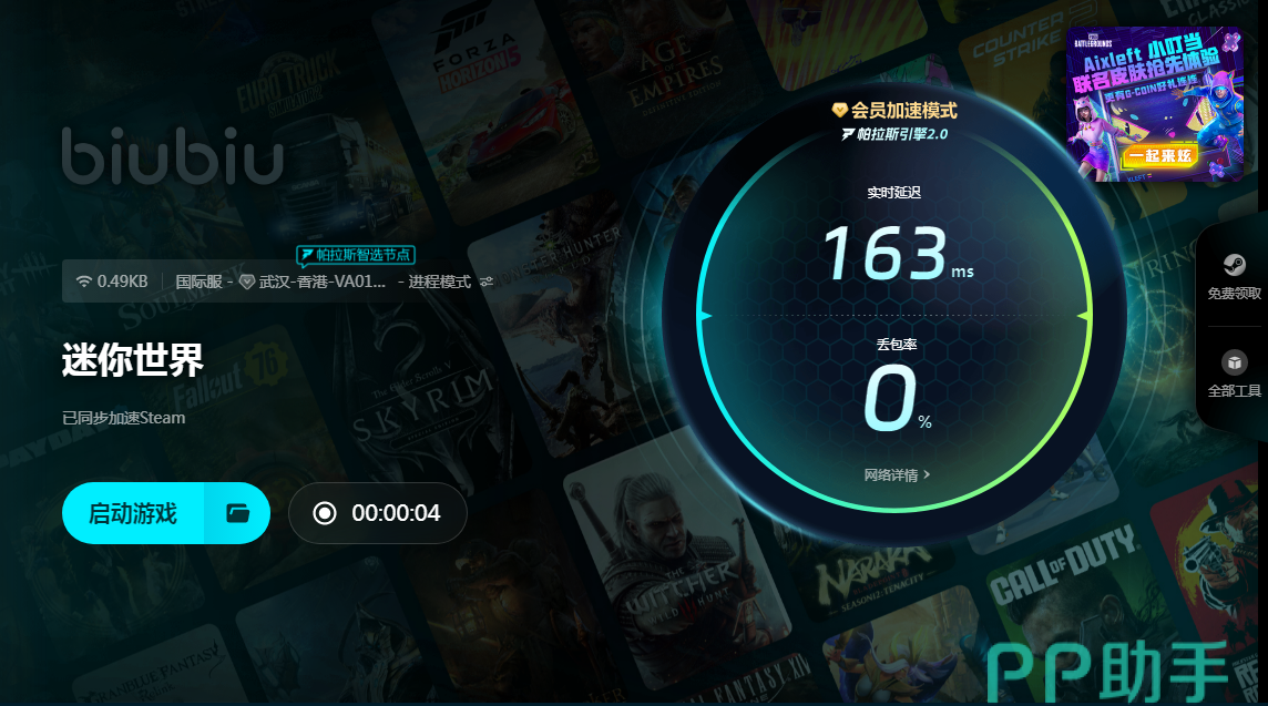 迷你世界其实并不是一款只有自己才能进行建造的游戏,它还适合多人联机进行互动,大家邀请朋友在一起联机,共同进行探索、冒险和建造。具有着较强的社交互动性,当多名玩家一起合作完成一个庞大建造项目时,将会享受到合作乐趣,这比自己单人游戏要更有趣很多。另外游戏还会不断推出新内容、活动以及各种功能,保持游戏新鲜感,这些都需要占用更多资源。为了能够让游戏里不再卡顿,biubiu加速器是大家都需要的软件。现在注册新账号会直接赠送24小时加速时间,所以不用担心功能性能方面的问题,先感受之后再做决定。另外还有一项不得不说的福利,大家只需要将兑换码【biubiu不卡顿】填写进兑换栏中,就能直接兑换得到三天加速时间。