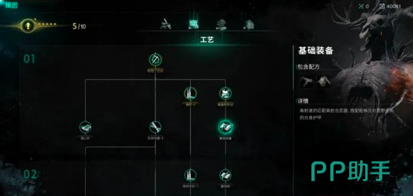 通过模因系统的工艺栏也可以解锁很多武器装备的蓝图,再解锁装备制作台,这模因一分支上就可以获得一系列的武器以及一些突袭套装蓝图。