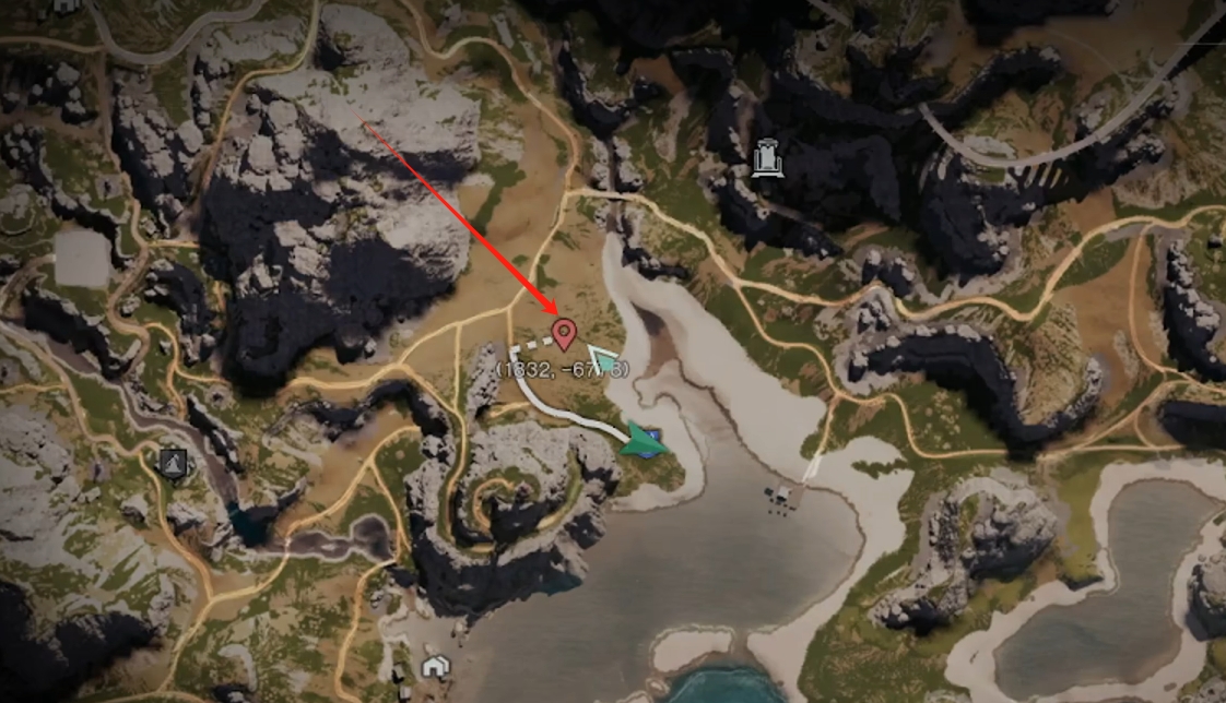 硫磺的位置在内海传送塔北方偏东一些,直线距离约200米左右,建议开摩托车前往,整体分布得较开,但数量不少。