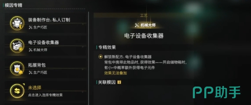 然后极速hi强化燃油精炼设施、装备制作台-私人订制、特制储物箱等,它们提供了重要的生产能力和个性化选项,在此之下才是木石行囊、拓展背包、太阳能电钻等,虽然依然有用,但相对于高级别专精来说,它们的应用场景和影响力略显有限,最后的石油工艺也可以是首选的模因专精之一,它能够将15个小油和50个星尘矿合成为50个星尘源质,这种转换效率极高,而且原料获取相对容易。