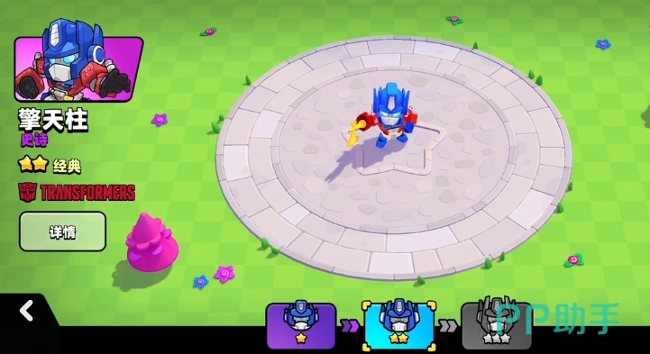 在游戏中,玩家若能快速将擎天柱升级到2星及以上,就能更早地享受到他恢复技能带来的生存保障,擎天柱主要展现了三种不同的形态,就是初级、经典和高手,每种形态都有其独特的武器和攻击方式,在初级形态下,擎天柱依靠拳击进行近战攻击,虽然伤害值相对较低,但是后面随着游戏的进展,当擎天柱进入经典形态后,他的攻击方式会切换为斧头,尽管伤害值与初级形态相同,但攻击频率有提升,最终当擎天柱达到高手形态时,他将使用极光枪进行攻击,这种武器不仅具备高攻击频率,还拥有较远的射程,使得擎天柱能够快速压制敌人。