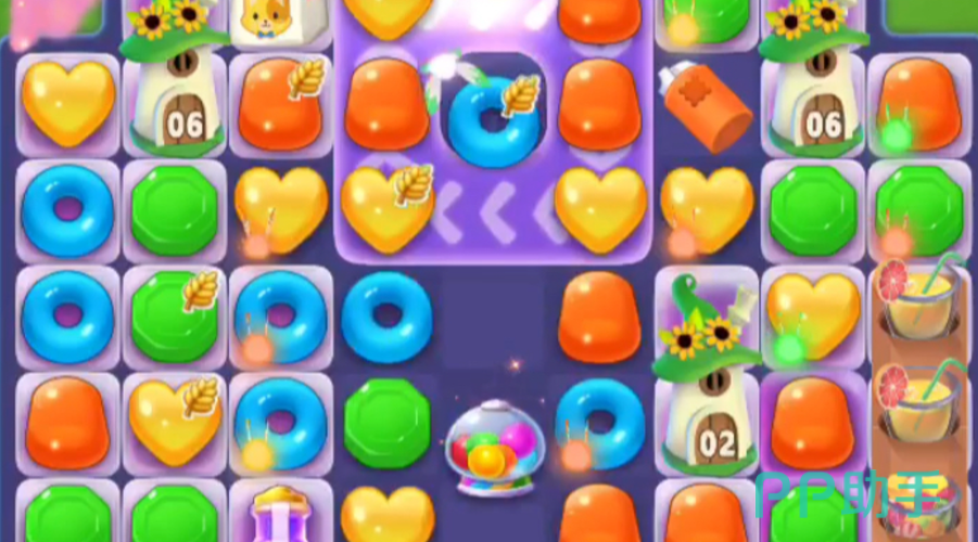 游戏当中也有许多的特殊道具可供玩家选择,主要道具有四种,它们分别是铲子、锤子、手套、棒棒糖,铲子可以任意铲走一个方块,并且随机刷新一个任意色系的方块,而锤子能够砸碎所有的方块,让方块进入到随机打散模式,可供玩家重新筛选,手套可以返回到上一次操作,棒棒糖则可以增加游戏的时间,这几类道具在游戏的每日签到之中都可以获取。