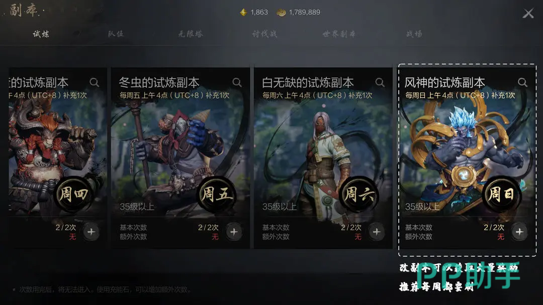 目前副本是有所调整的,之前的刷新时间是每天,现在改为每周刷新,如此一来小伙伴们每天任务的负担就大大减轻了,可以选择在周末的时候去打副本,此时大家的战力也是比较高的,当然,小伙伴们也可以根据自己的时间灵活来调整。