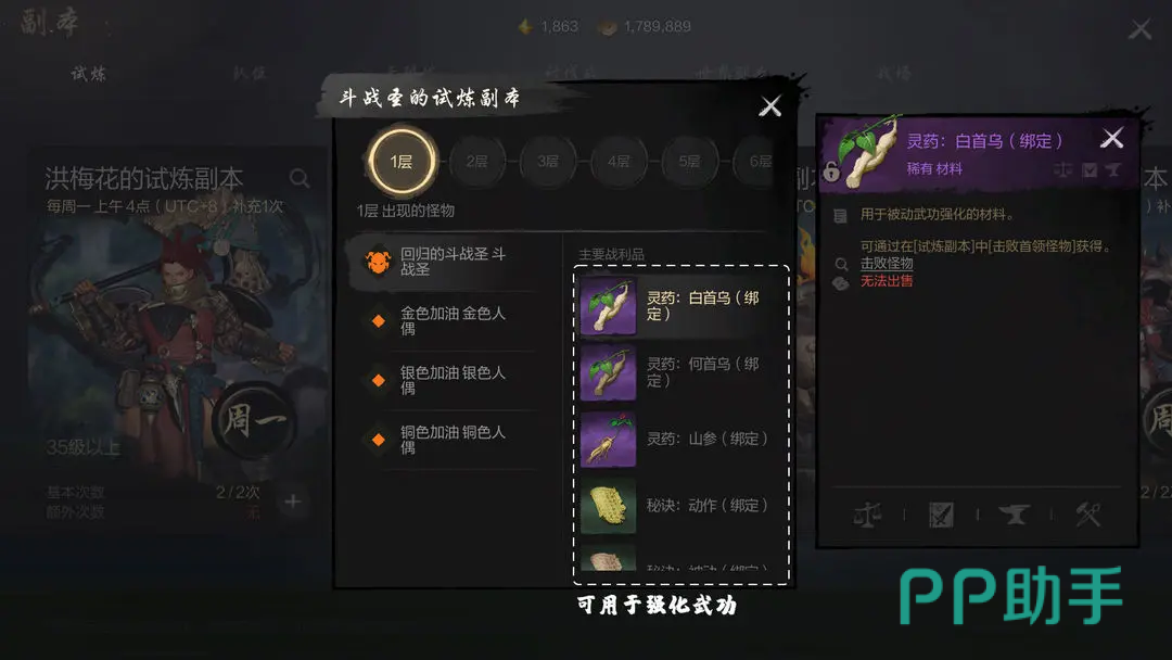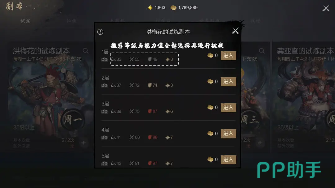 首先可以参与的是单人试炼副本,该挑战里面每个关卡的BOSS都固定的,能根据对手的情况来灵活的改变打法,挑战的层数越高,那么后续的难度就会越大,当然通关后能够拿到的奖励就越多。