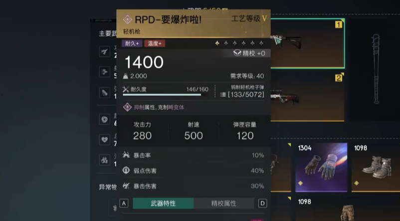 模组副词条,不稳定爆弹伤害加成,元素伤害,异常伤害,暴伤加成。模组方面头部要带精准打击,异常专家,面具方面带单独爆破,胸甲则是要看副词条,手套带弱点强化又或者是异常强化/元素强化,裤子模组用百步穿杨或者精准充能,鞋子稳扎稳扎/掩护备战。异常物方面选择破碎少女。