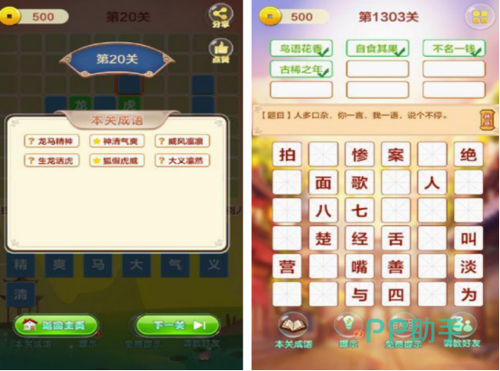 除了可以与家人朋友玩成语接龙游戏,在手机上也可下载这种类型的,在成语填字游戏中,主要就是利用给每个词语填上适合文字的方式来组成相应的成语。收录了1400多个关卡,每一个关卡所包含的成语类型都是不一样的。也是来自成语大辞典当中的,如果你正在学习这个书籍当中的内容,可在游戏中通过娱乐的方式帮助自己巩固知识。