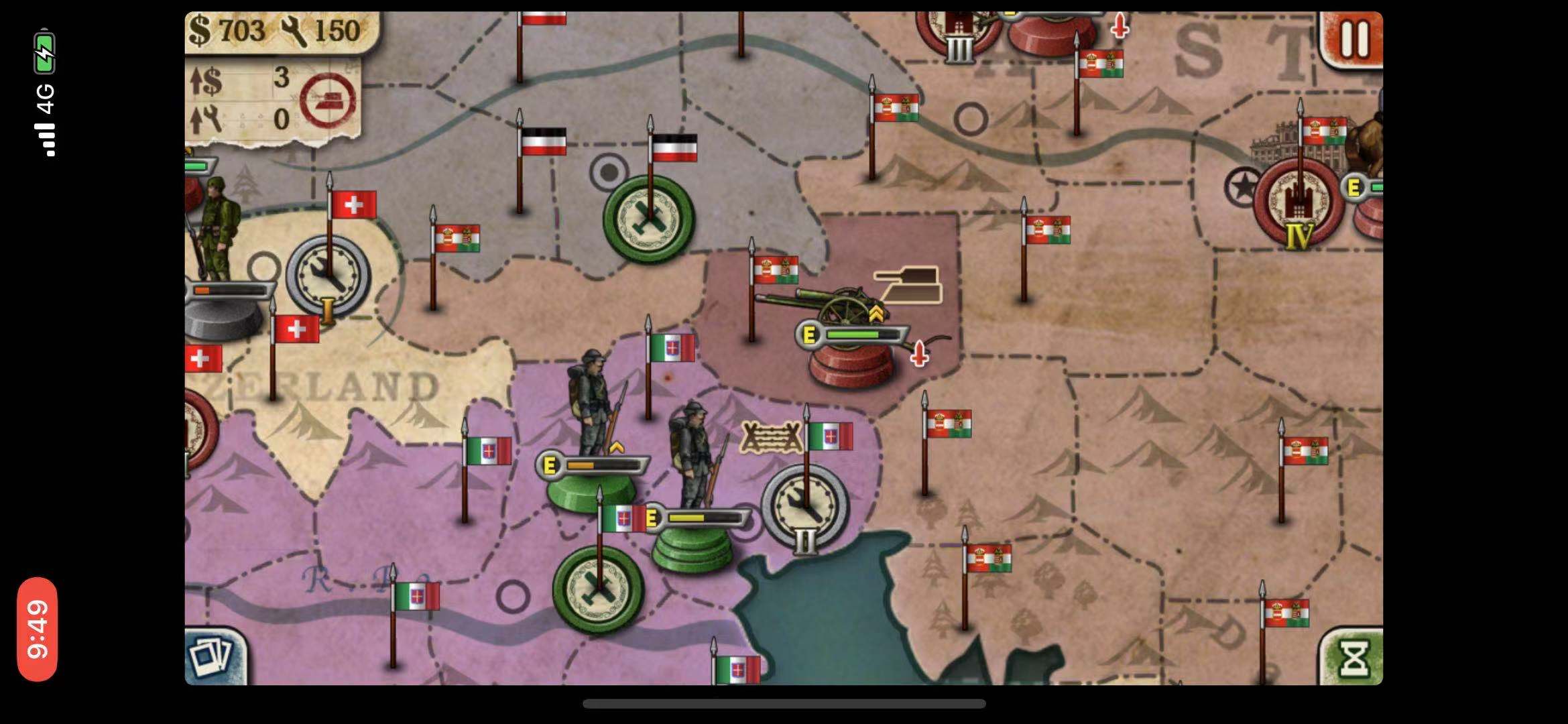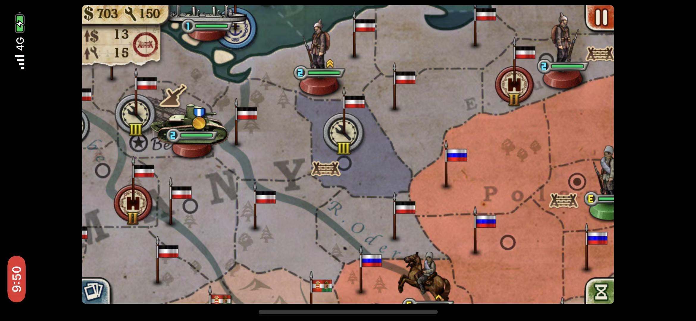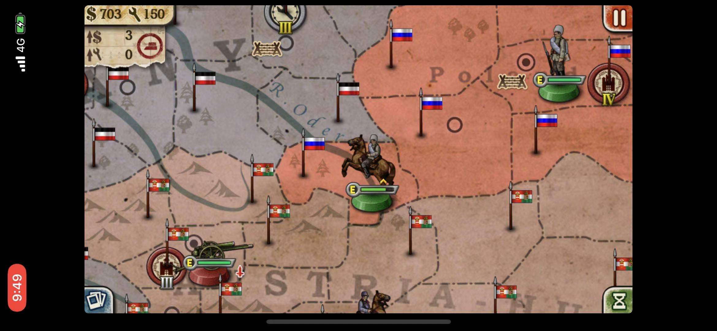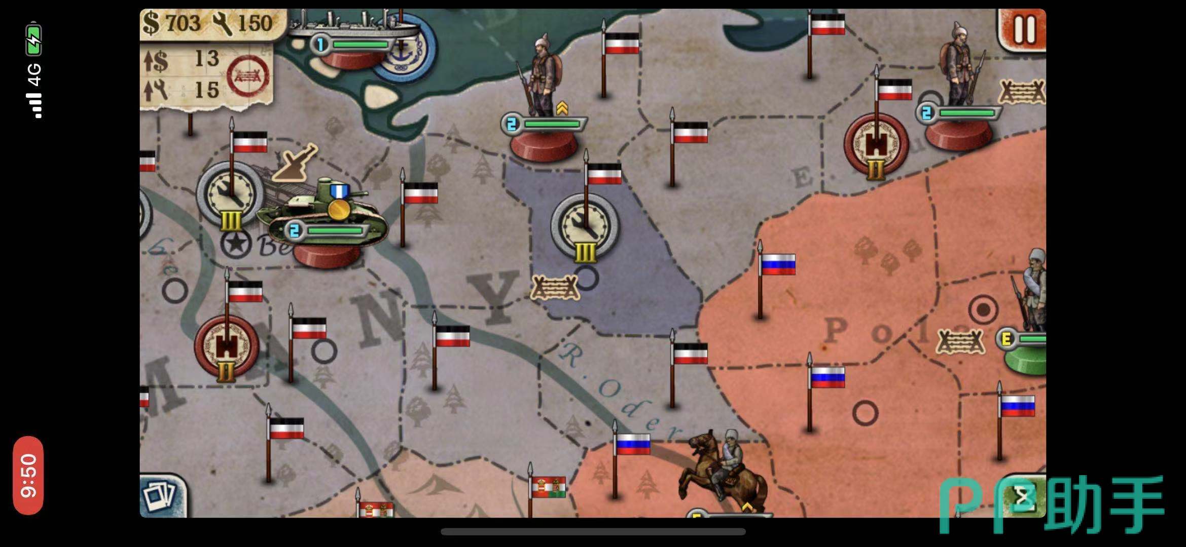 大炮被围在中间玩家还可以让自己的部队去分担大炮的反击伤害,然后一到两个回合就能够把炮兵打下来了。注意打炮兵的时候要使用投弹兵之类的高级兵种,不然大炮反击给低级兵种很可能直接把低级兵种打死。打死士兵的大炮会升级军衔,提升防御力和攻击力,想要打败就更不容易了。
