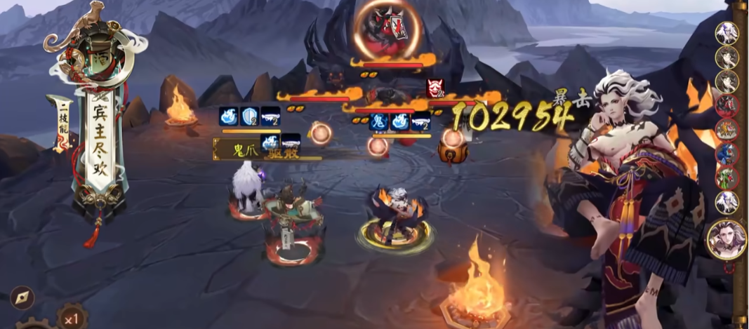 一技能“宾主尽欢”,驱散攻击最高的其他非召唤物友方目标普攻指定敌方目标,施放时驱散友方全体1个减益状态。大招可以创造2个回合的神饮之宴结界,期间自身免疫混乱,结界中敌我双方非召唤物在回合结束时,也有40%的基础概率被施加混乱。