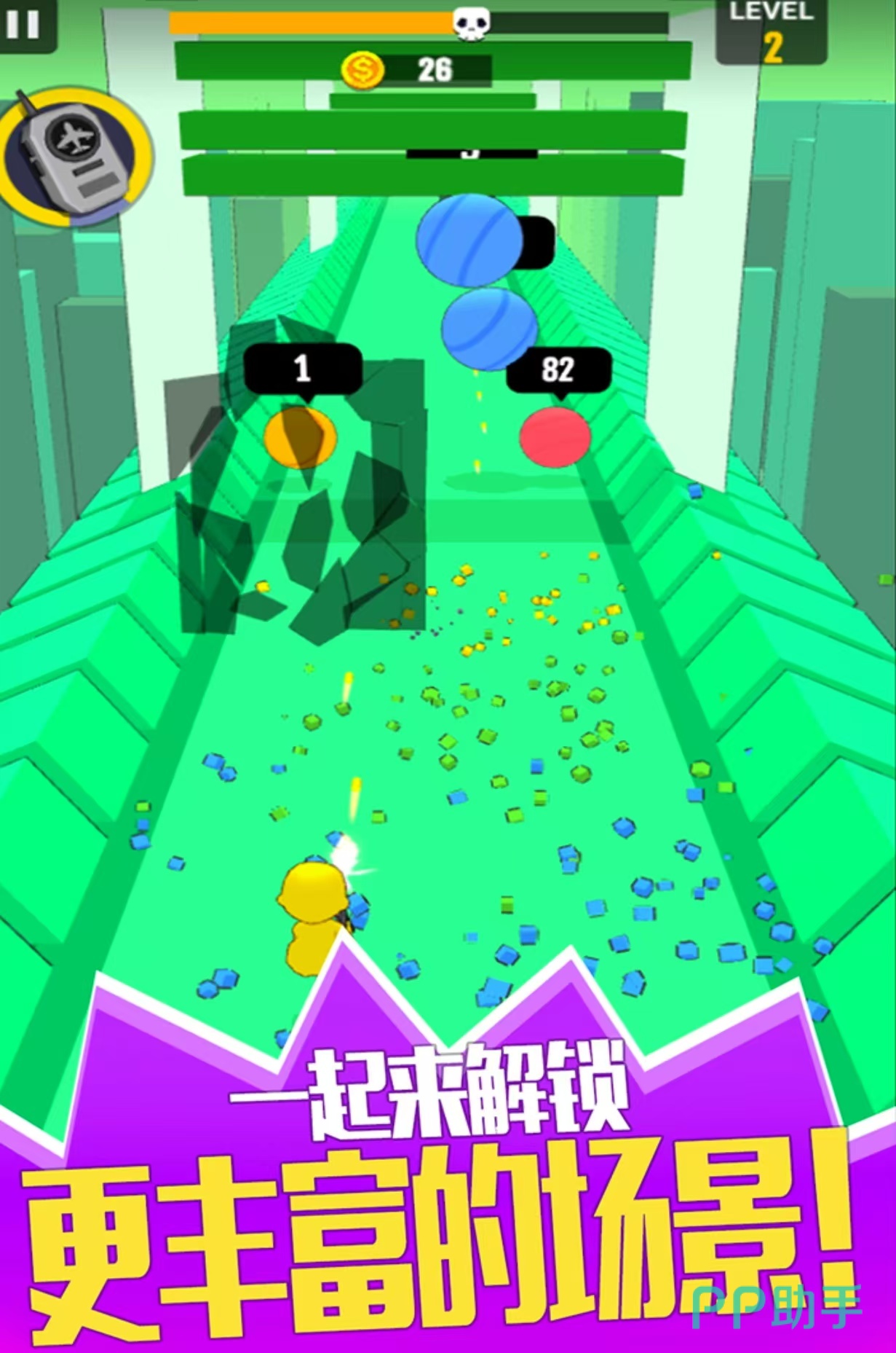 在游戏里,我们要在布满挑战的道路前进,路上障碍物众多。我们需将其击倒,每成功一次,都能收获奖励。这些奖励能用于获取新武器或提升自身属性。游戏画面色彩绚烂,射击体验流畅,随着关卡深入,障碍物的布局与种类更趋复杂,对玩家射击技巧和策略规划的要求也更高。无论是新手玩家追寻简单乐趣,还是射击高手渴望新挑战。
