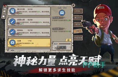 一款让玩家在末日里求生的冒险游戏,角色比较多样。故事里充满了末日的艰难,玩家得努力打败僵尸,同时收集资源,探索未知的地方。玩家可以多去不同的地方看看,找各种资源,这样才能打得过那些僵尸。末日里挑战多,资源也得不停找,还得做厉害的武器保护自己。每个角色都有自己的本事和招数,把角色的潜力都发挥出来,用不同的方法打僵尸。