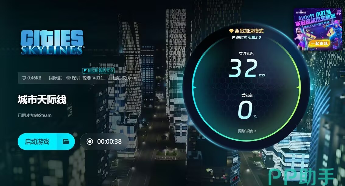 在biubiu的 首页直接编辑好游戏名称就可以看到相应的加速版本,一键启动可以将其放置后台,这个时候操作任何软件也不会受到影响,同时游戏中的玩家也不会受到干扰,关于加速时间,延迟率和丢包率都是可以实时进行查看的。