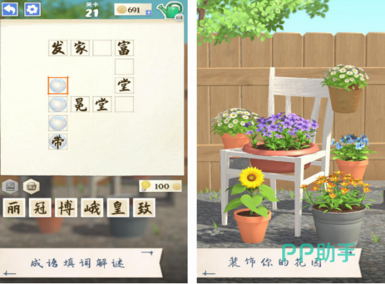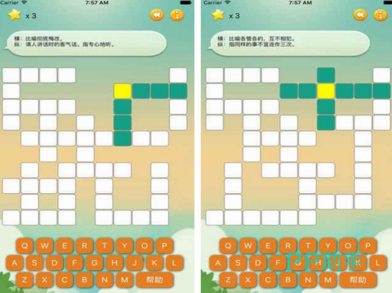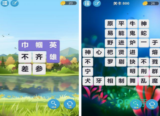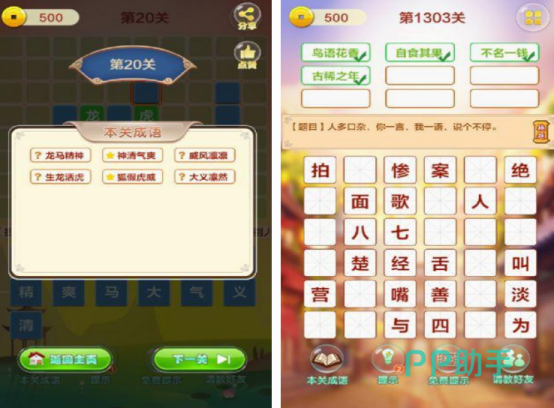 在这款专门为了很多年龄段的玩家设计的,有着趣味性的内容,利用补充完整的方法,各种方式组成符合要求的内容以后就能顺利通关。其中就包括满足大家需求的,在提示的一些文字当中,要将其填到正确的方块内,保证横竖列的能成立,如果在玩的时候想要挑战看图猜成语,也是没有问题的。