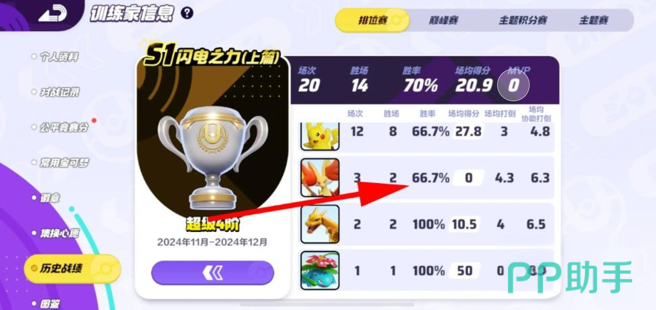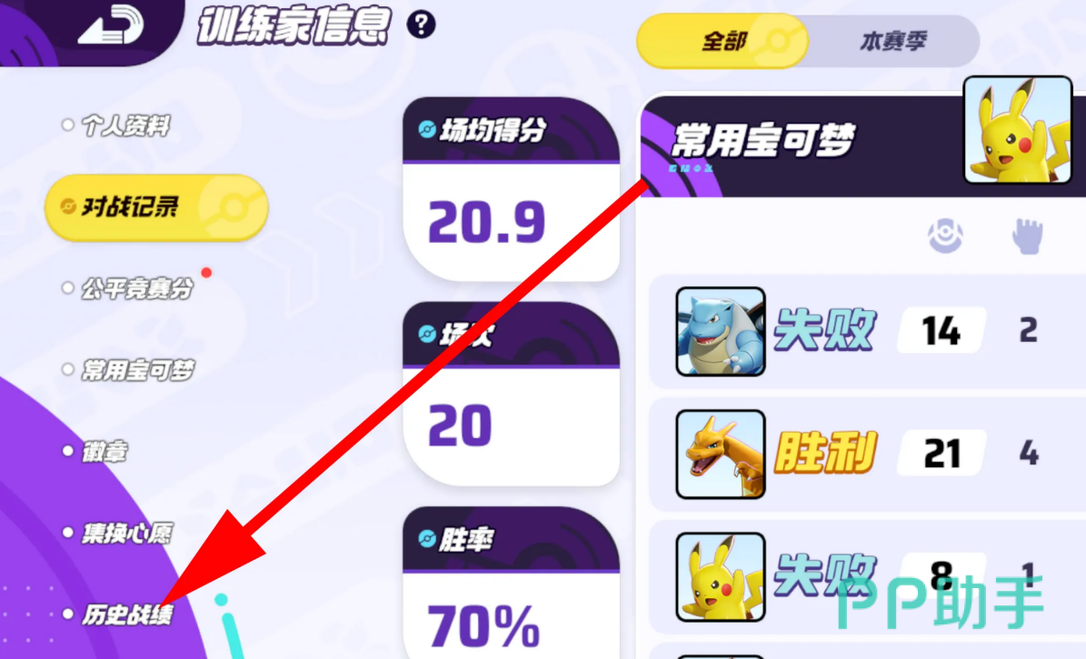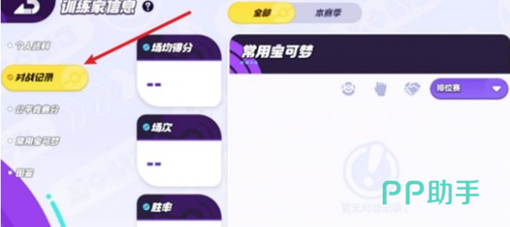 要查看历史战绩,首先需要进入个人主页。在游戏主界面,找到左上角的头像并点击,这将带你进入你的个人主页。在个人主页中,注意右上角有一个“详情”按钮,点击它,系统会将你带入更详细的训练家信息页面。在该页面左侧的菜单中,找到“对战记录”选项并点击。这样,你就能查看自己的对战记录,包括对局类型、常用宝可梦等具体信息,所有战斗足迹一目了然。