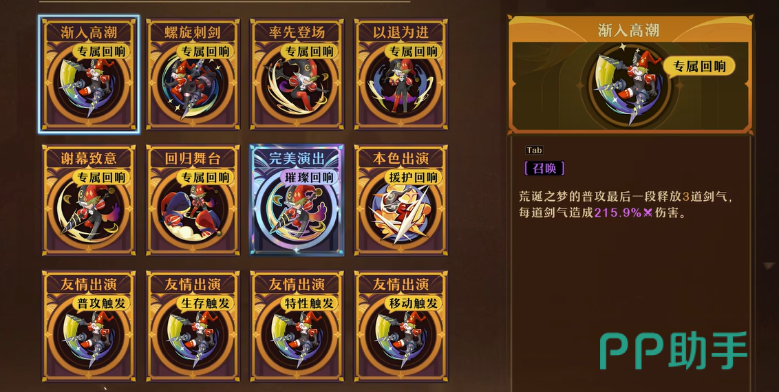 要想打造出一份优质存盘,需要玩家对游戏的流派和角色机制有深入了解。第一步是提前规划目标卡牌组合。在角色图鉴中,你可以看到每个角色的回响池内容。根据角色特点,事先设计好符合自己流派需求的回响卡组是非常重要的。这样能避免在刷关时毫无头绪,浪费时间。其次是不懈尝试,耐心刷卡。