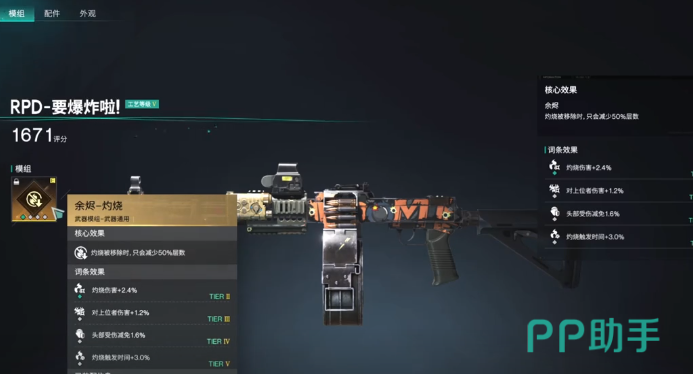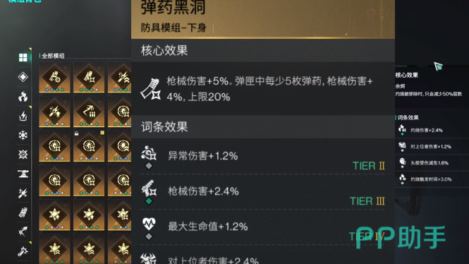 模组搭配方面可以选择带余烬,头部方面可以选择异常专家面罩,衣服可以用快速返场,裤子可以直接使用弹药黑洞,手套主要选择异常强化或者是元素强化。