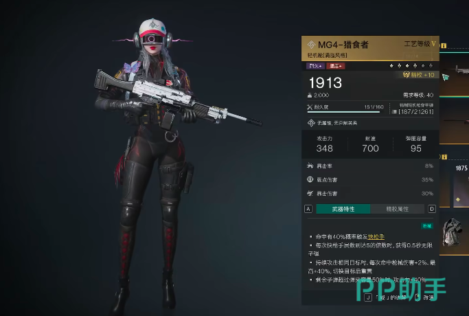 最后一把压轴出场的是MG-4猎食者,这把枪支的基本属性首先是命中40%的概率触发快枪手;每次快枪手达到五层的时候可以获得0.5秒的无限子弹;在持续攻击相同目标时,每次命中伤害可增加2%,最高40%,切换目标后重置;在剩余子弹超过弹药容量50%的时候,攻击力可增加40%,其实从这些词条对比来看的话,他的第三个词条能够保证玩家在打雪国boss或者是精英怪的时候会有着非常高额的伤害,并且这个boss血越厚,玩家持续的攻击时间越长,那么所达到的伤害也就越高。