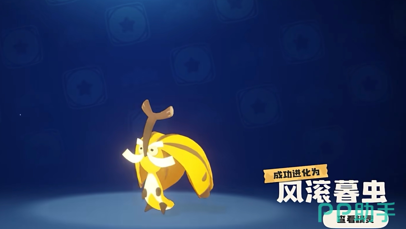 先把蓬叶虫练到35级,然后把它设置为跟随模式,此后只要玩家在地图上不断移动,蓬叶虫就会在跟随玩家一段时间后,蜕变成为了风滚暮虫,从而完成进化。