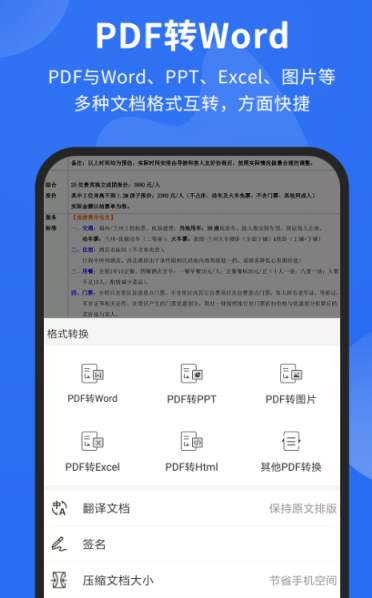 即使是初入职场的小白也能轻松使用该app,快速地完成pdf转多种格式的需求,不仅在转换过程中性能稳定,不会影响了文件的内容,转换的速度非常快。还支持新建pdf编辑、签名、翻译等等一系列的功能,下载到手机上,有相关方面操作时打开手机就能完成,无论是手机、平板还是电脑等多端设备均可使用,能轻松导入多种文档。