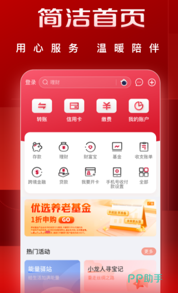 此银行也是大家非常熟悉的,在日常存储或者是一些企业为员工发工资时,会应用到这款app,涵盖的服务项目非常多,有很多的理财产品可供用户参考。涵盖了生活缴费以及查看账单、了解收支等,想要合理管理好自己的资产,一定要在手机上下载一款好用的app,不用到银行去也能查看卡内的余额以及支出收入明细。