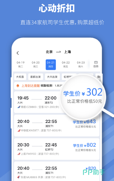 专为学生推出的特价机票app,汇聚全网学生机票有超低折扣,帮助所有学生降低购买机票的费用,让大家在出行时更加便捷,乘坐飞机也能享受极高性价比。目前平台直接连接34家航空公司,提供优质又独特的低价购票模式,折扣价格一目了然,丰富的福利活动,靠谱的销售渠道24小时全天候在线,为你提供贴心服务。