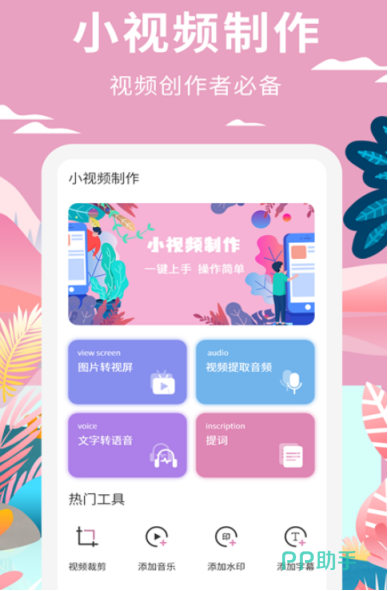 想要让自己的视频在各大平台迅速涨粉上热门,一定要在剪辑上多多下功夫,用这款《小视频制作》软件来剪,专业的工具只需简单的步骤,就能剪辑出让人眼前一亮的视频,支持随意的在视频中加水印。把视频中好听的声音提取出来,可以制作各种有趣的字幕特效,强大的视频编辑功能,适合制作各种电商以及促销类型的视频,也适合剪辑记录生活类型的视频。