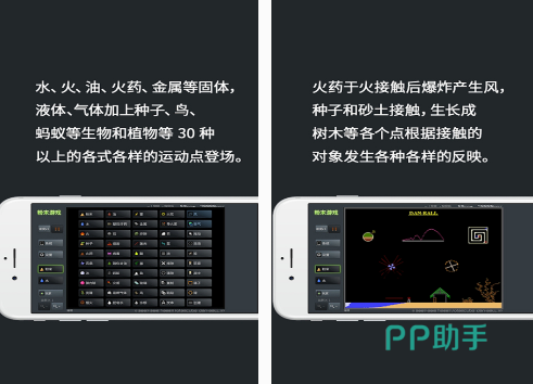 这款满足需求的主要就是利用将粉末点燃以后所做的模拟游戏来让大家看到具体的表现,类似于做实验的小游戏。如果你对粉末比较感兴趣,进入游戏以后可看到很多自然有趣的现象,还有很多的颜色。通过模拟做实验的方式就能发现,不管颜色是怎么样的,利用方法可有不同的形状。还有30多种不同的生物以及植物,会发现接触对象不同,反应也是不同的。