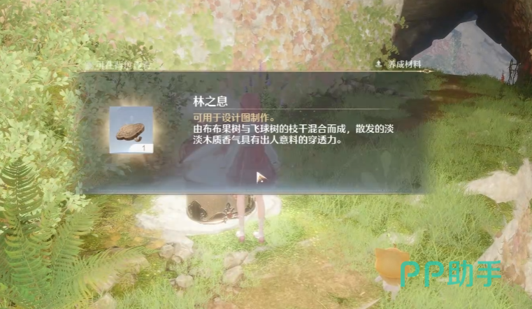 想要这个需要先接取净化洞窟香气任务,随后就会自动弹出来关于这个材料的见闻,点击接取后来到采风基地的传送点,抵达后一直往左边走,走到能看到花海的地方后,往右边走,到头后能看到一个山洞,进入后顺着指引,找到宝箱并清除附近的小怪就能获得。