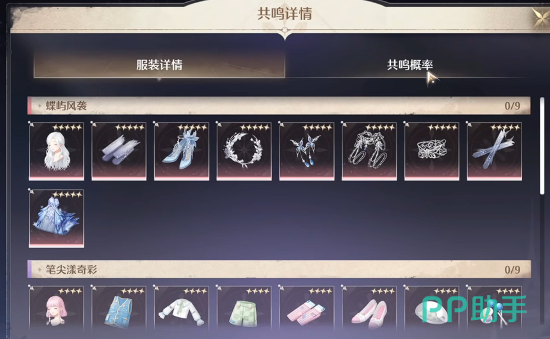 不同于有的游戏里抽卡是抽单个目标物,像是单个角色、武器,这款暖暖游戏里抽卡是抽服装部件, 一套服装有9个服装部件,凑齐9个才算毕业。