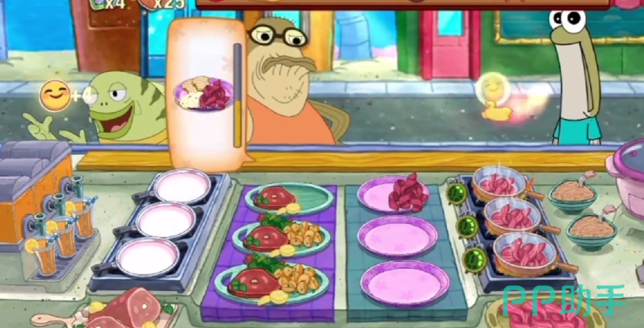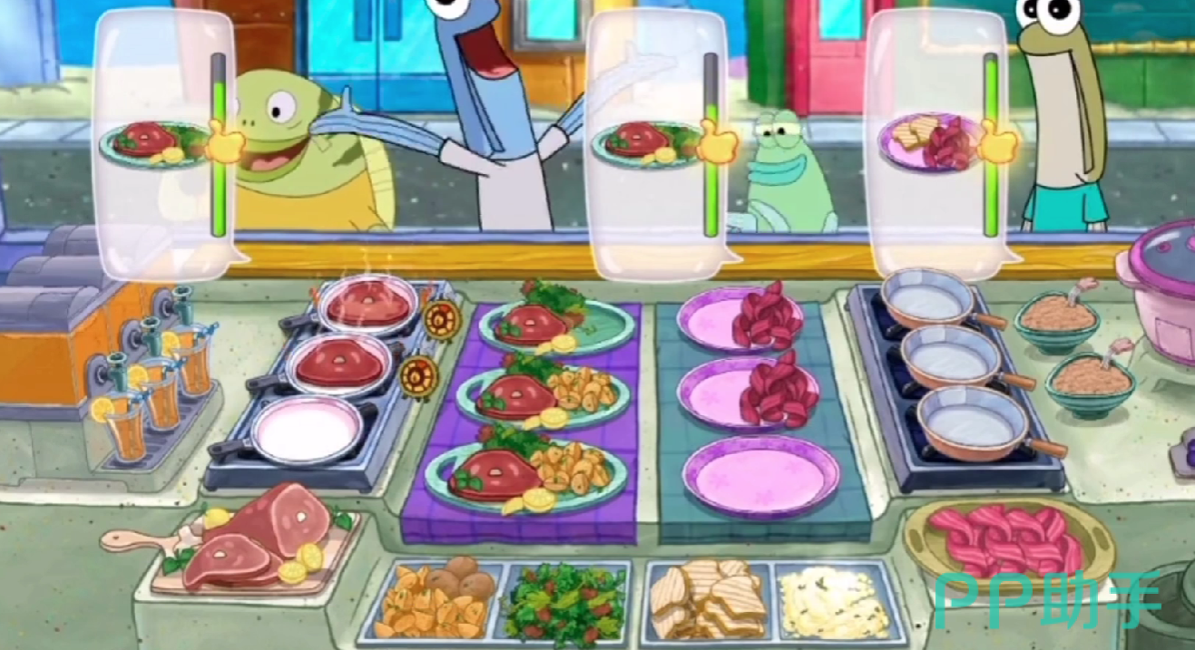 在游戏的前期,玩家只需要制作一种汉堡即可,随着游戏进度不断推进,蟹黄堡餐厅也会推出各类新的套餐以及口味不同的菜肴,当玩家在游戏中获得了最高游戏积分时,还能够获得双倍的游戏金币,而游戏金币可以用于升级游戏基建,例如可乐桶和面包烤箱等等。
