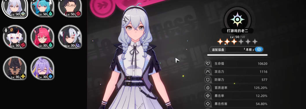 其次就是她的形象,形象非常的好看,白色的头发扎着麻花辫,很是灵动俏皮,整体形象以黑灰白为主,她在整个PV中出现的频次是非常高的,从她的数值面板来说,首先就是生命力,生命值的数值比较高,在战斗中的存活能力会相当出色,其次就是攻击力也达到了1千多,而且攻击的速率很高,暴击效果也相当不错。
