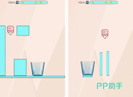 这款利用正确方法将奶瓶的水顺利倒入小桶中就能帮助大家顺利过关,有非常简单的设计体验时,无论是胜利通关以后还是在哪个阶段,都会让玩家特别有成就感,也会感觉格外开心。体验时大家会看到引流的瓶子以及水管,利用正确划线的方式帮助奶瓶利用正确线路做到引流就可以了,每次挑战的时候都会显示相应的分数以及进度。