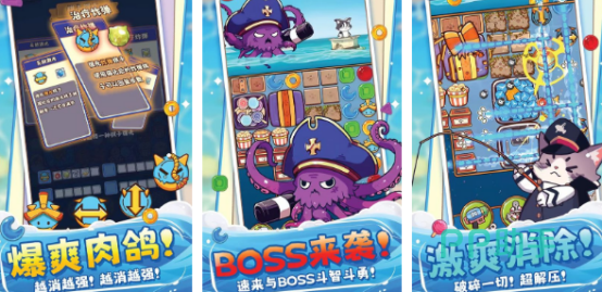 肉鸽与消除结合这样的游戏,是众多玩家非常感兴趣的,每个关卡没有特定设计,每个关卡都是随机的,通过打糖果的方式快速消除击败boss。游戏中也有呆萌的猫咪设定,猫猫会推送出各种丰富的关卡,可自由探索并推动关卡,当完成紧张刺激的出海之旅之后,能获得超多道具,有爆爽的肉鸽模式,每次消除糖果之后都能增加个人实力。