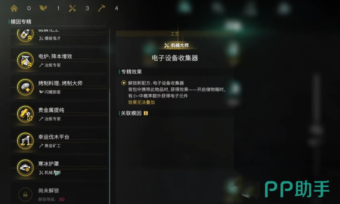 木石行囊,扩展背包好伙伴。专精解锁时可降低原木与矿石重量。对热爱采集与建筑的玩家而言,负重压力将大大减轻,特别是当前、中期对资源需求较大时,这种专精可以使您承载更多的物资、一次完成更多的建造工作。若要依靠资源盈利,贵金属的提纯专精是不容错过的。此专精可解锁金、银锭生产配方,电炉冶炼金、银矿可获得贵重金属锭。金锭、银锭可供商店交换大量转能电池使用,它们不但是重要货币资源,而且可为许多装置提供能源。依靠贵金属提纯专精可以使您在不断累积科技点的同时达到资源变现的目的。