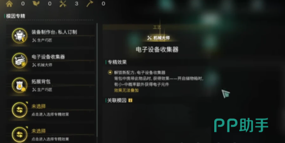 模因专精的选择需依据个人玩法偏好与发展节奏进行策划。喜欢囤积资源建立交易体系者可首选硫磺化工及石油工艺;偏于建筑、采集等玩家可重点点亮拓展背包、木石行囊等;并且热衷科技升级以及后期开发的玩家推荐选用星尘抽水泵以及贵金属提纯。合理地匹配这些专精能使自己在末世之路上走得更有效率,走得更从容不迫,真正实现资源不被浪费,开发不被落后。