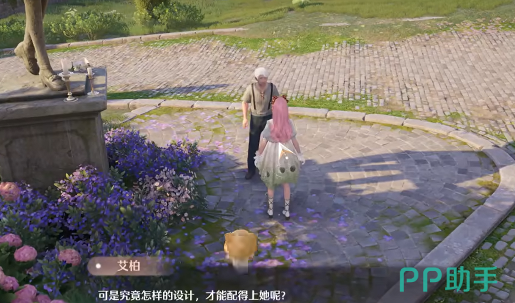 一旦你穿上了祈愿新生的完整服装,就可以根据地图指引,前往镇长宅邸的左前方角落。在这里,你会看到一座雕像,而雕像旁边站着一个NPC——艾柏。与他对话后,你将接受他的委托,并进入下一个任务环节。