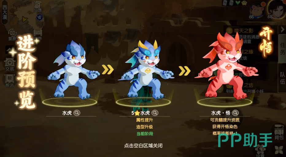 普通的宠物可以通过【进阶石】提升资质和成长,所以即便是低等级的宝宝有好的技能也是有培养价值的。系统给的召唤币不要滥用,能够合成进阶抽,去抽取更高级别的宠物。