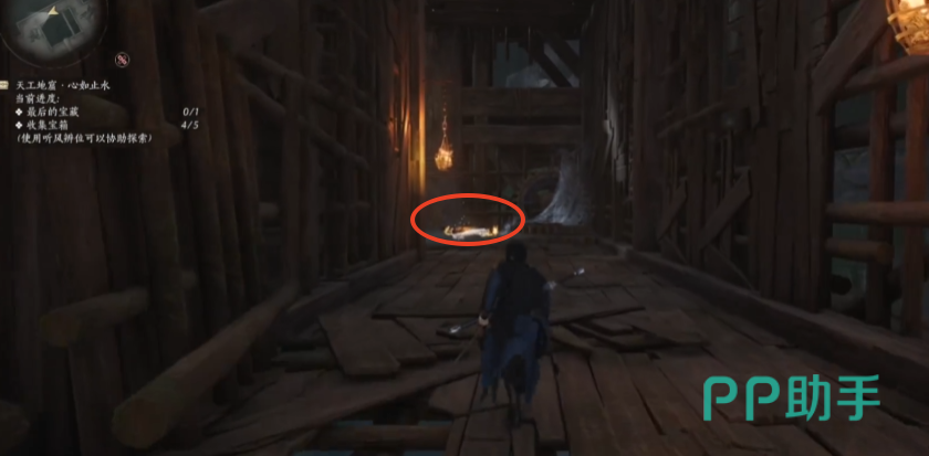第五个宝箱则非常好找就在走廊尽头的拐角处。
