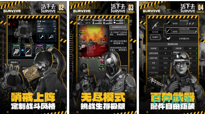 活下去是丧尸主题的竖屏单机文字互动类手游,本作加入了沉浸末日剧情和压抑的氛围塑造,暗黑的美术UI配以背景中时隐时现的哀嚎声会让你心惊肉跳,主线剧情模式与无尽关卡等玩法让丧尸游戏粉丝乐在其中,百余种武器的加持会让玩家的生还几率直线飙升,喜欢生存冒险游戏的你能在这款文字游戏中活下去吗。