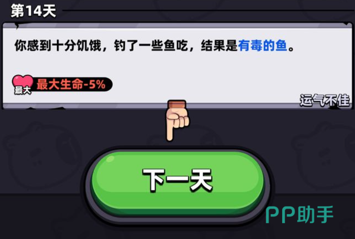 游戏里每一关有19天,需要不断点下一天来触发一些随机事件,利用这些随机事件可以提升属性、获得技能,当然也有可能会降低属性,这样一点点战斗获得经验。如果只是这样就没意思了,怎么选其实是有策略的,可以形成许多玩法流派。