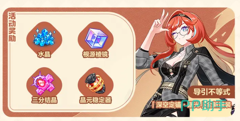 新的版本还会开放全新的主题“倒计时:好梦开始!”活动,奋勇参与活动就能领到“深空 定锚·曙光”的新皮肤等奖励。新活动怎么少得了新福利,体验新版本内容完成一系列任务可以瓜分多达3亿的水晶,获得精英凭证解锁券等福利。