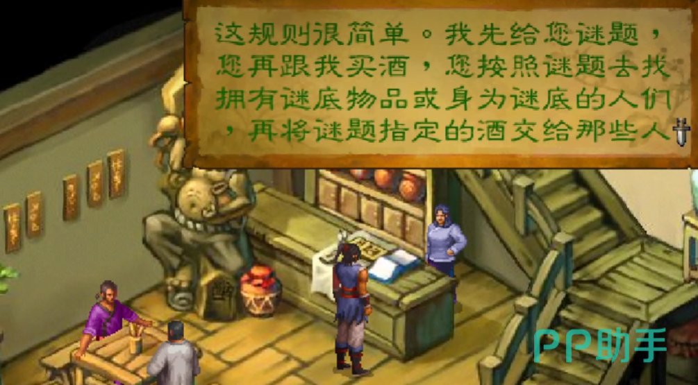 我们只需要根据谜题来猜测出谁含有谜底,或者找到含有谜底的物品。并将酒送给谜题所指定的那些人,就能够完成猜谜。说来说去还是为了将他的酒全都卖出去,接着他们会给我们本店的信物。只需要在末时之前,再将收集到的信物交给老板娘,我们就能得到丰厚的奖品。