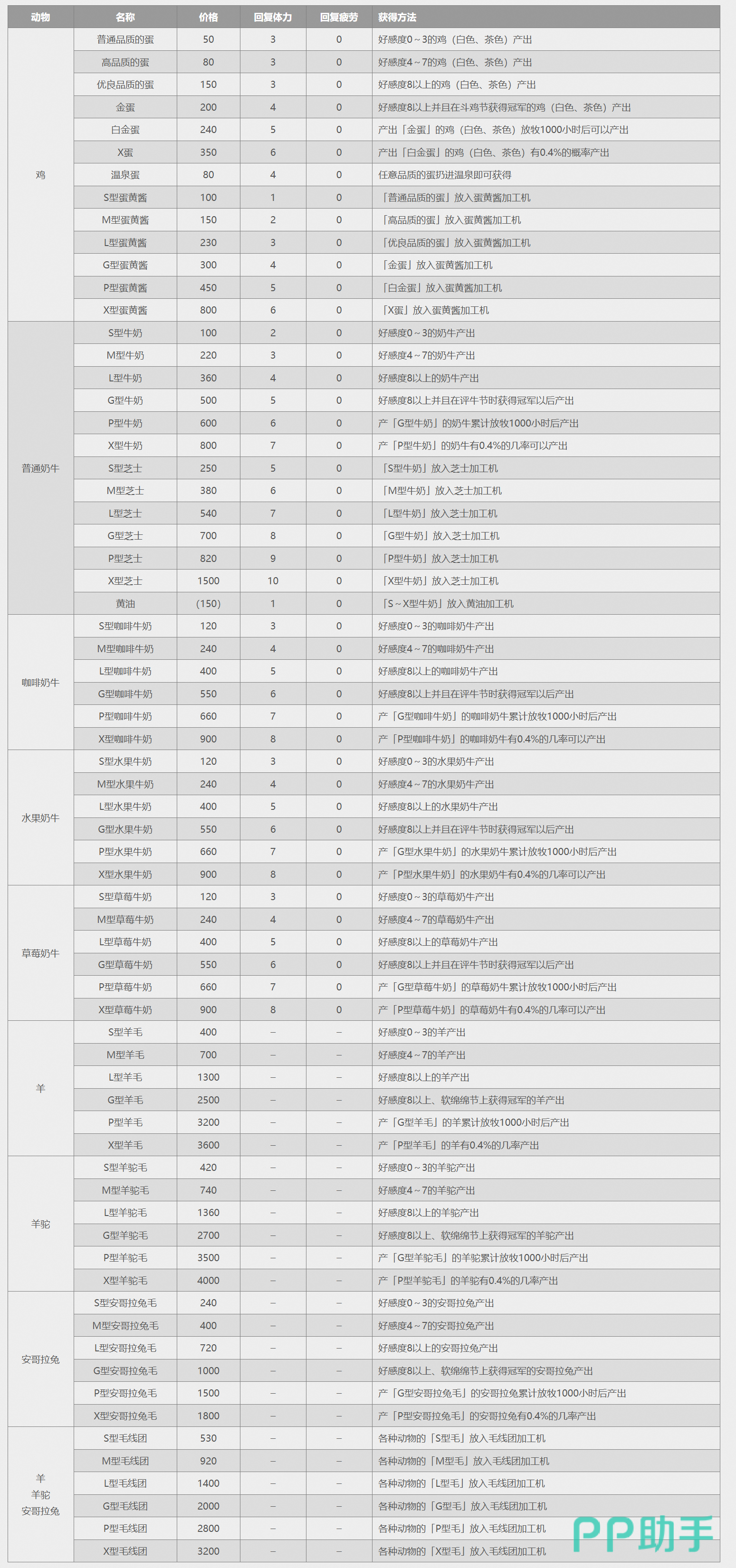 最后小编给大家整理了一下目前副产品大全图表,希望能帮助大家攻略游戏