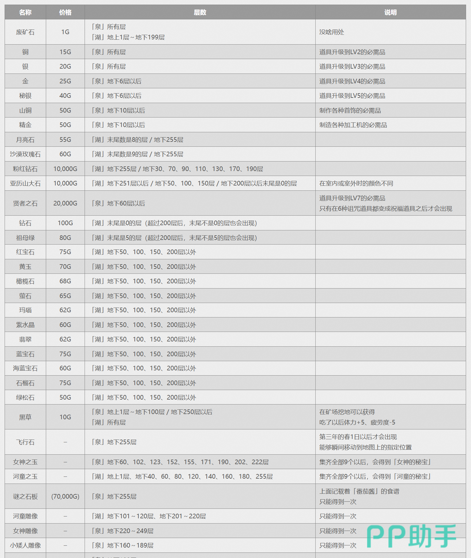 好了,上述内容就是牧场物语重聚矿石镇矿石大全的全部内容了,各位在看完了上文描述,对于此方面也有全新了解了吧,该游戏不仅玩法上丰富,更是汇聚了多种不同元素给到大家,为的就是让小伙伴们游戏体验效果能更加丝滑,朋友们近期对此有打算就抓紧去进入其中来试试吧。