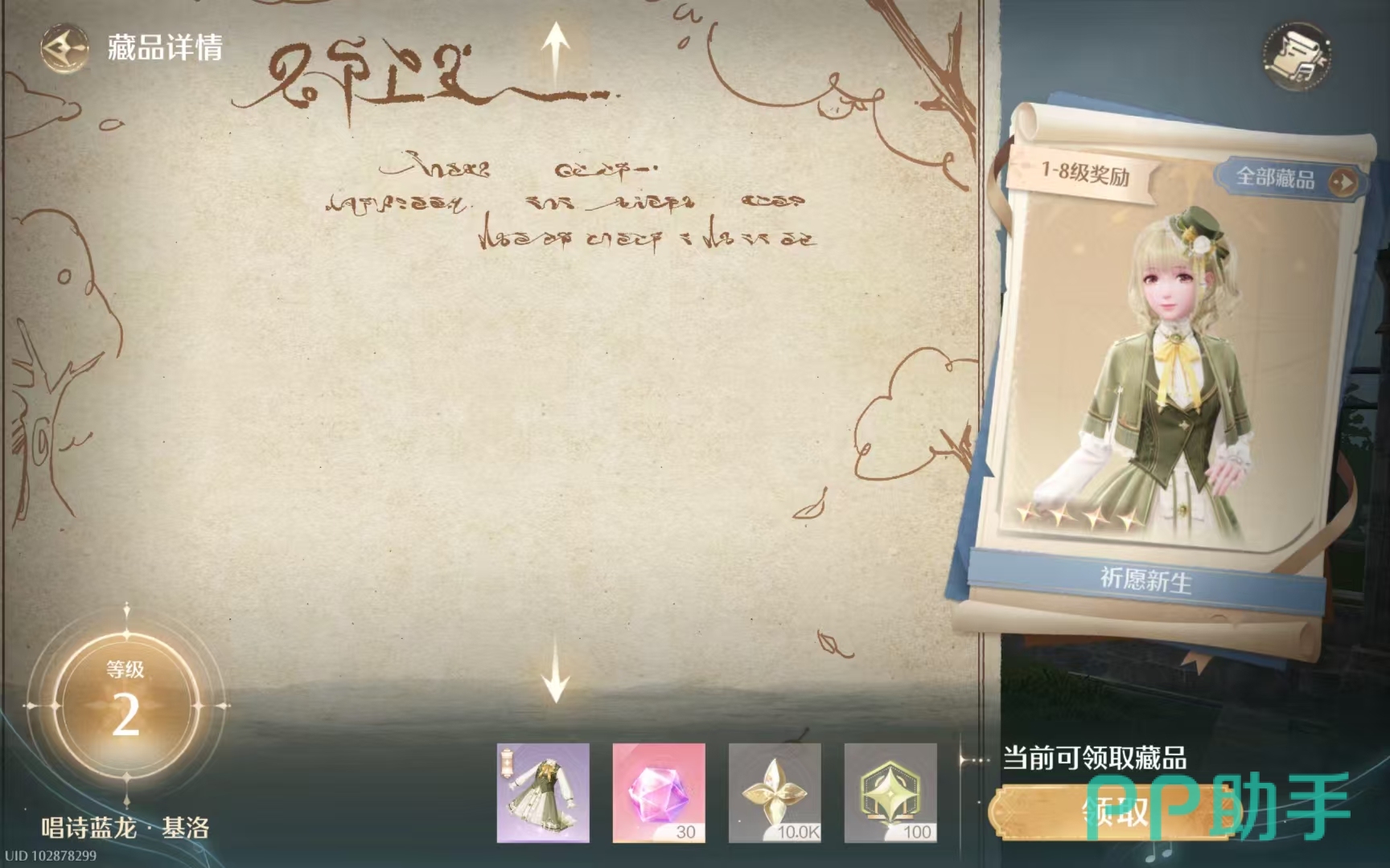 当我们来到纪念山地,找到唱诗蓝龙之后,通过和唱诗蓝龙的对话供奉30枚“灵感露珠”,而唱诗蓝龙作为《无限暖暖》的重要NPC,每接受一次“灵感露珠”的供奉就会赠送我们一次礼物。在第二次送礼时,唱诗蓝龙送给我们的礼物就是“祈愿新生”这条“旧日的她”见闻任务必备的任务道具。
