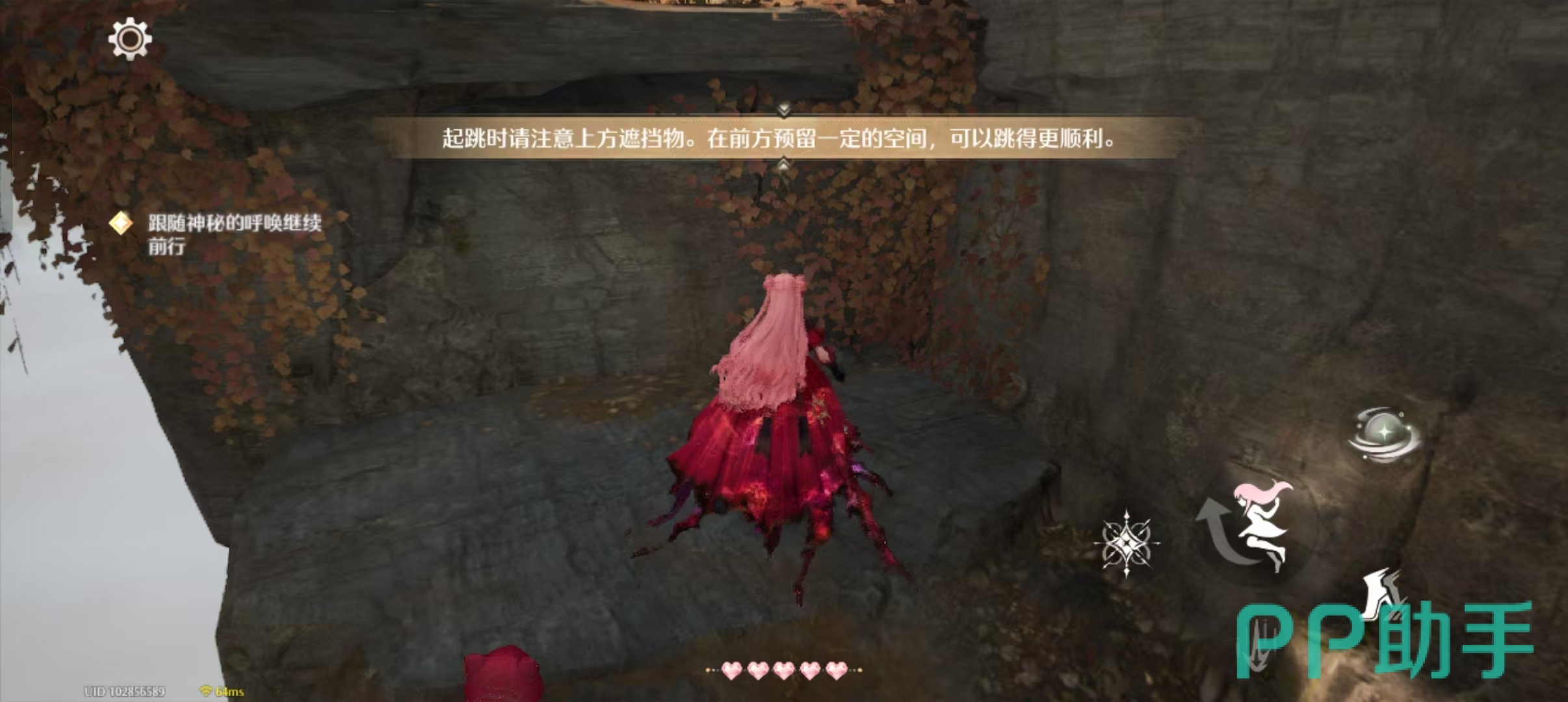 在《无限暖暖》中,最基础的跳跃方法就是在滑动摇杆的同时,点击屏幕上的跳跃键,这样可以帮助我们轻松跳过一些较低的地形或者关卡。而在面对一些较高的地形时,我们也可以通过长按跳跃线,增加我们跳跃时的高度和距离。