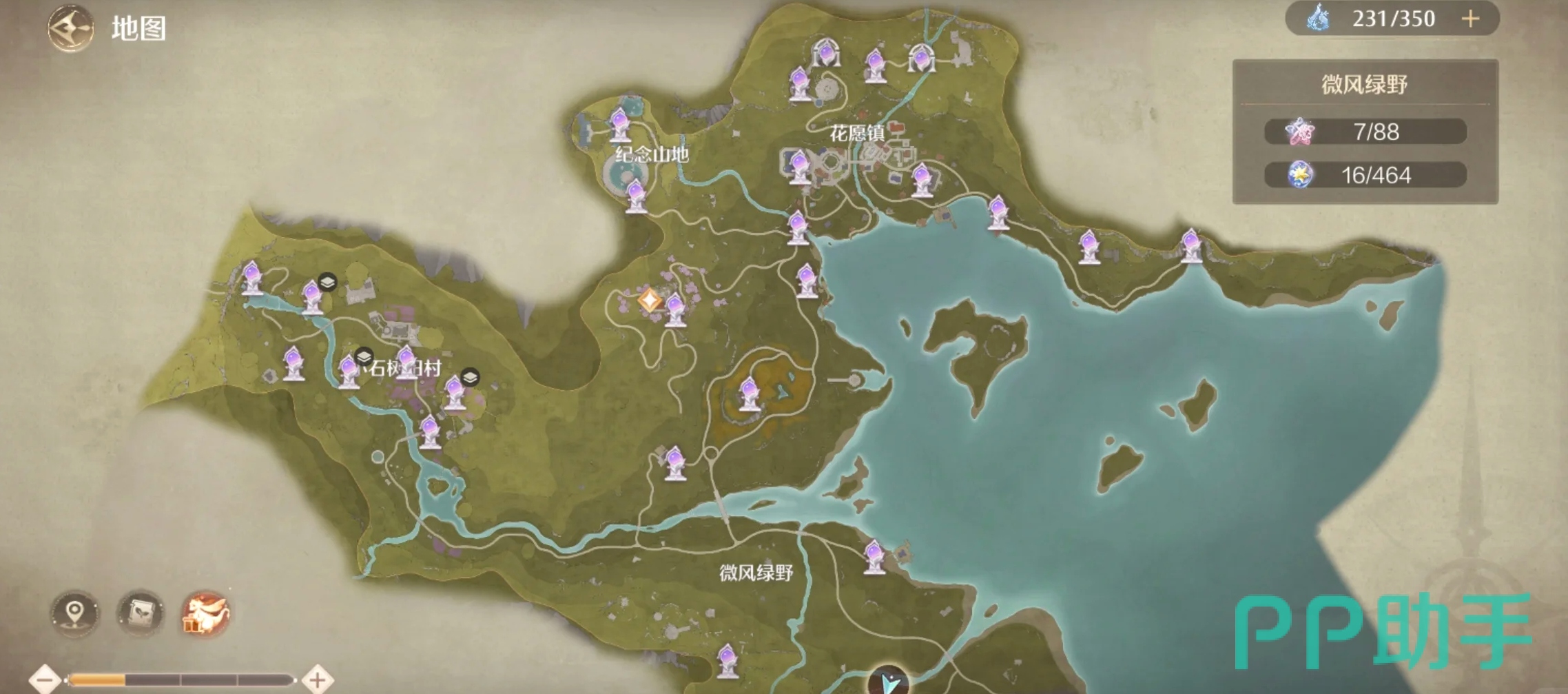 石树田村就在大地图的左上角区域,跨越海洋,是风景秀丽的小岛,不过大家暂时去不了,因为无法过海,不过随着主线的发展,小伙伴们后面解锁了花朵漂浮套装就可以去这里了。