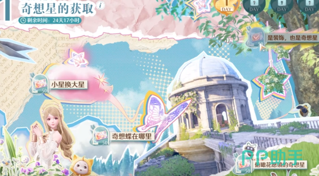 另外在半山腰学院这边就可以看到有一个奇想蝶绕圈飞,玩家只需要切换成捕虫的套装,等到蝴蝶飞过来之后马上就可以捕捉,这就意味着完成了这一次的任务。接着玩家可以来到悠悠垂钓协会花苑镇分部传送点,在这里就能拿起小星星完成解锁任务。