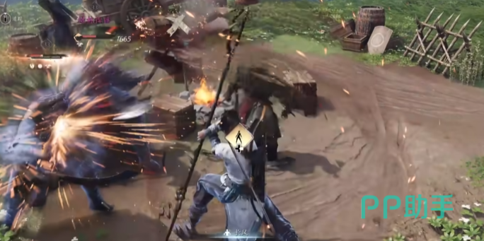 无名枪法还有突刺技和定身技,定身还是蛮有用的,可以起手定身然后开转。九曲枪则是打一套连招,武学技则可以主动激活剑花。使用八方风雷枪武学的话,长枪就变成了坦克定位,自身攻击不高,但可以嘲讽敌人,给敌人挂易伤,看上去更多是为了联机玩法设计的武学。