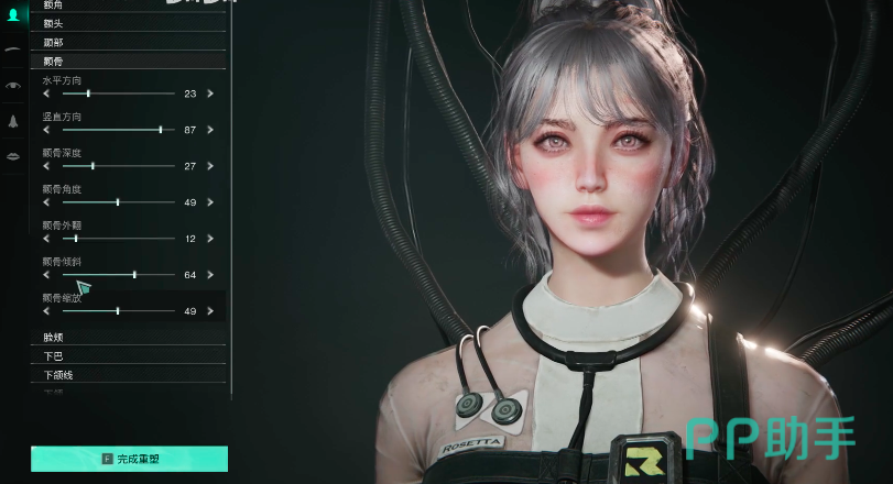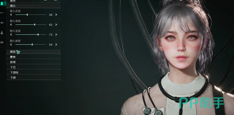 在预计上小编建议选择第一排左侧第一个,这个基础脸型比较流畅,而且在后期的五官调整上,新手也是比较好操作的,在额头的调整上,建议玩家先从额角做起,额角的水平方向是49,竖直方向57,额角深度可随意调节,额角大小设定在80左右即可。而额头的高度在37左右,角度的话不用过大,一般中间值就可以了,玩家可以将额头宽度稍微调宽,但要根据脸型来进行合理设定,目前在70左右就比较合理。